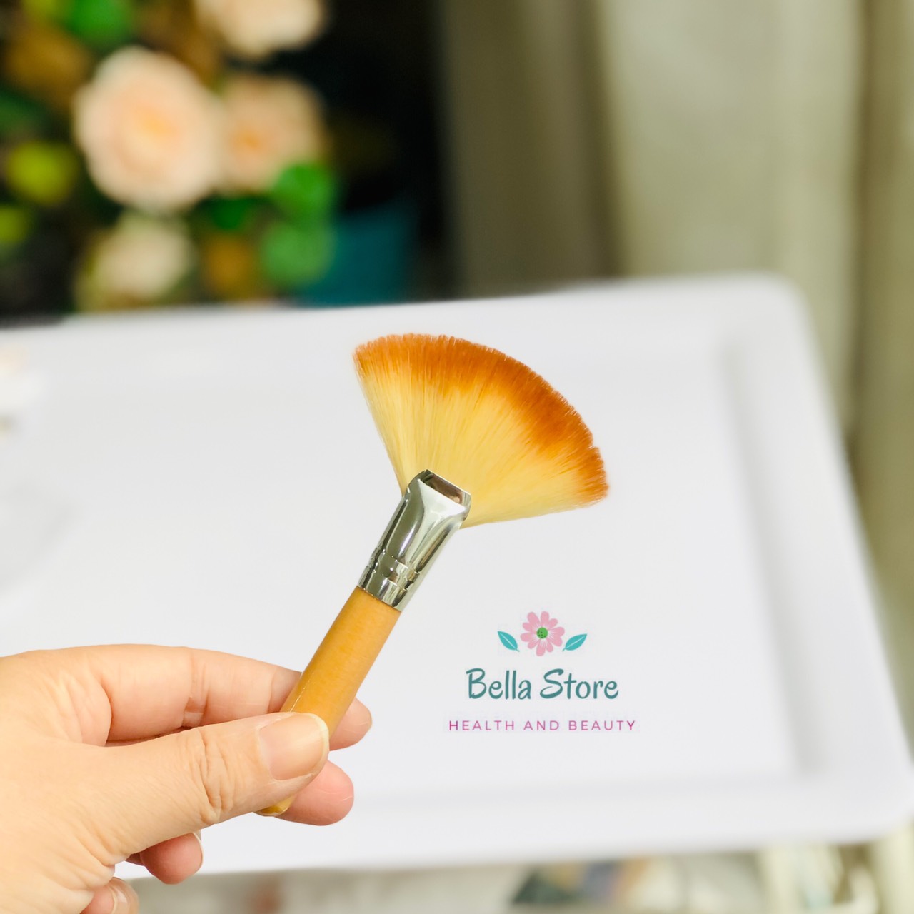 Cọ quạt Fan Brush có đầu lông xoè tròn, tán rộng dùng để tán phấn phủ dạng bột, phủi phấn dư trên da khi baked, có thể dùng để tán má hồng kiểu phớt phớt giống Hàn Quốc, để cọ nằm nghiêng sát mặt rồi tán phớt nhẹ từ trong ra ngoài