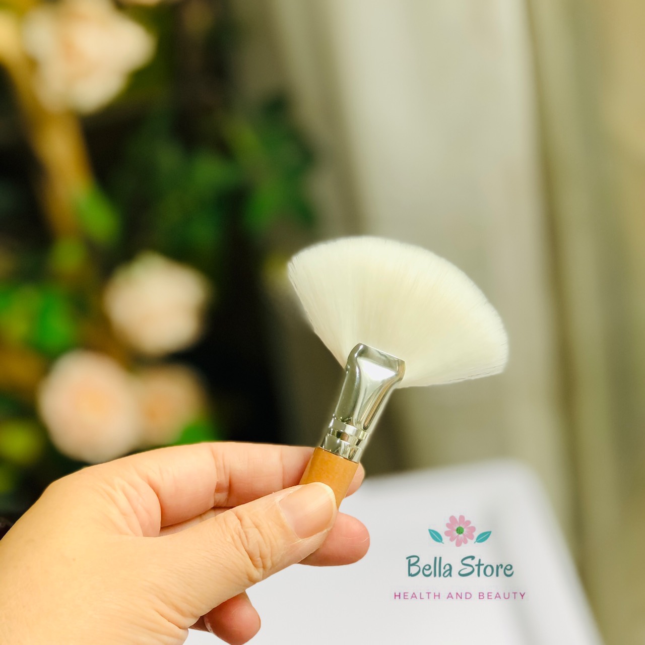 Cọ quạt Fan Brush có đầu lông xoè tròn, tán rộng dùng để tán phấn phủ dạng bột, phủi phấn dư trên da khi baked, có thể dùng để tán má hồng kiểu phớt phớt giống Hàn Quốc, để cọ nằm nghiêng sát mặt rồi tán phớt nhẹ từ trong ra ngoài, má ửng hồng xinh cực.