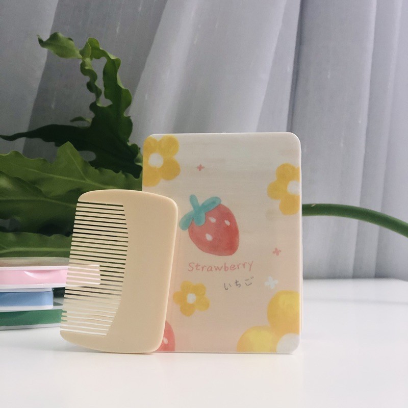 Gương cầm tay nhỏ gọn, dễ thương, kèm lược nhỏ tiện lợi. Có nhiều mẫu như hình. Bỏ túi đi chơi đi du lịch đều tiện.